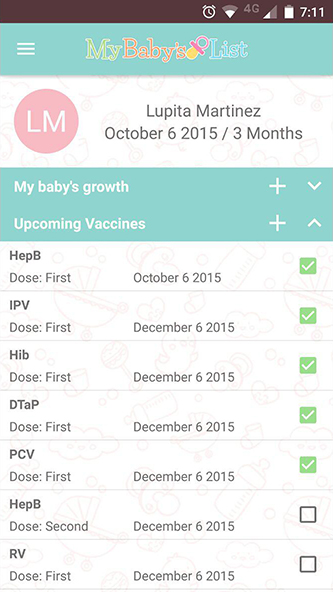 My Baby's List is a mobile app designed to keep your baby's growth records, remind you about the baby's shots, and has a basic list of products so you can be ready when the time comes.